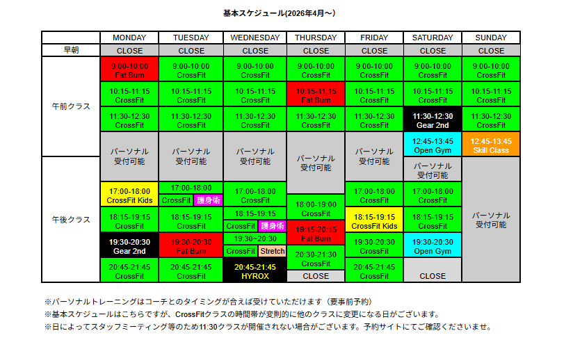 単発でCrossFitの苦手種目の練習をしたい方や、パフォーマンスの向上に